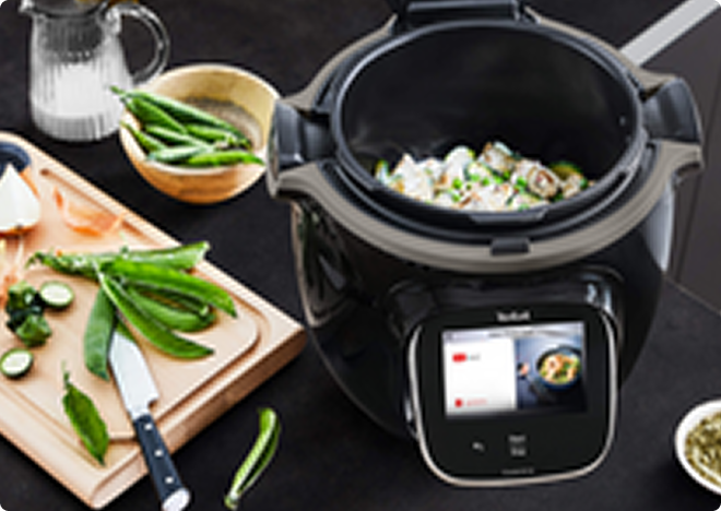 Multicooker inteligent cu gătire sub presiune Tefal Cook4Me+ Connect CY855830, conexiune bluethooth, aplicație dedicată, 6 moduri de gătire, instrucțiuni pas cu pas, 150 de retete, 6L, vas cu înveliș ceramic, negru