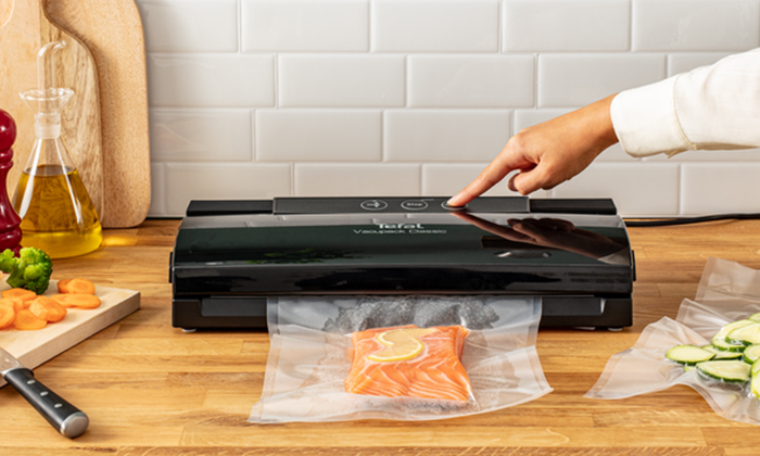Aparatul de vidat TEFAL vine la pachet cu 18 pungi (10 pungi 22 x 30 cm și 8 pungi 28 x 35 cm).