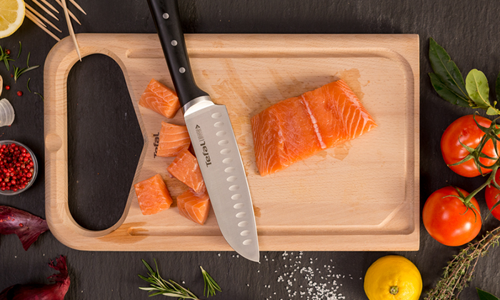 Bucură-te de o experiență aparte datorită gamei premium de cuțite Tefal ce oferă performanțe de lungă durată și un design modern. Cuțitul Santoku Tefal Ice Force este ideal pentru prepararea rapidă a peștelui.