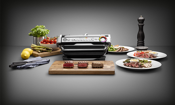 Descoperă OptiGrill+ Black, grătarul electric inovativ pentru nenumărate rețete delicioase. Dispunând de un senzor automat pentru gătit, timpul de preparare și temperatura sunt reglate automat în funcție de grosimea și de numărul de porții așezate pe suprafața de gătit.