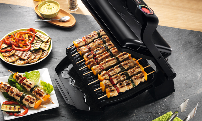 Descoperă OptiGrill+ Snacking & Baking, grătarul electric inovativ ce include și un accesoriu pentru gustări și coacere, pentru a obține nenumărate preparate delicioase gătite prin coacere, încălzire/reîncălzire. Dispunând de un senzor automat pentru gătit, timpul de preparare și temperatura sunt reglate automat în funcție de grosimea și de numărul de porții așezate pe suprafața de gătit.