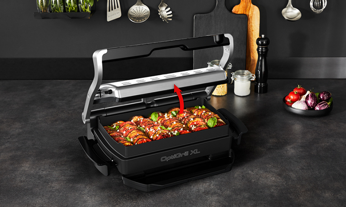 Grătarul electric Tefal OptiGrill+ XL Snacking & Backing: Senzor automat pentru gătit și indicator pentru nivelul de gătire, pentru un grătar perfect!