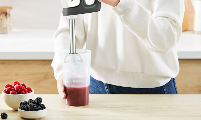 Accesoriu pentru mixare: picior pasatorPentru a te bucura de și mai multe opțiuni, piciorul pasator se atașează mixerului, transformându-l într-un blender vertical, ideal pentru a prepara supe, piureuri și multe alte rețete, totul cu un singur aparat! Paharul gradat te va ajuta sa dozezi corect cantitățile, să mixezi compoziția dorită direct în recipient, fără a o mai transfera în alt recipient. Simplu și rapid.