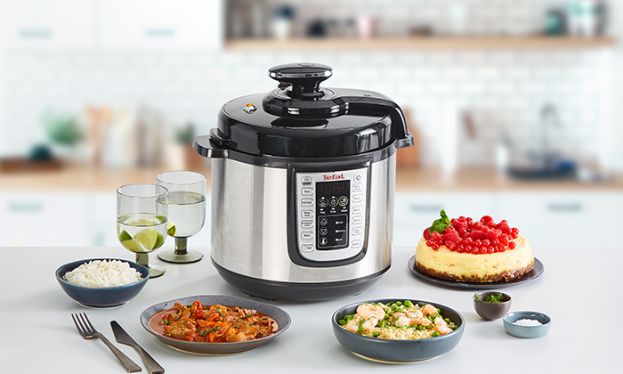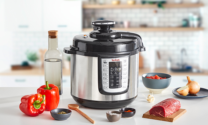 Bucură-te de rețetele tale favorite într-un timp scurt datorită oalei sub presiune electrică multifuncțională Tefal One Pot.