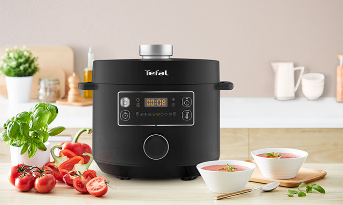 Oala sub presiune electrică multifuncțională Tefal Turbo Cuisine este partenerul ideal pentru a obține rețete delicioase mai ușor ca niciodată.