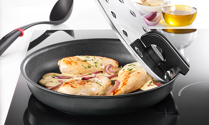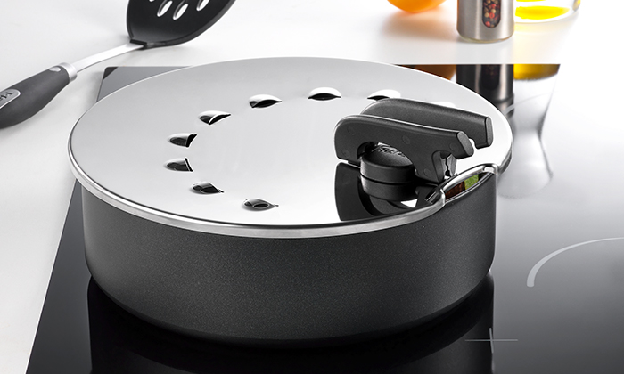 Datorită tehnologiei Ingenio ce conferă 100% siguranță, poți trece de la o tigaie la alta printr-un simplu click. Cu Ingenio poți găti pe plită, în cuptor, poți servi direct pe masă sau să depozitezi alimentelor rămase în frigider. De altfel, preparatul poate fi reîncălzit în același vas fără a mai fi nevoie să-l transferi.